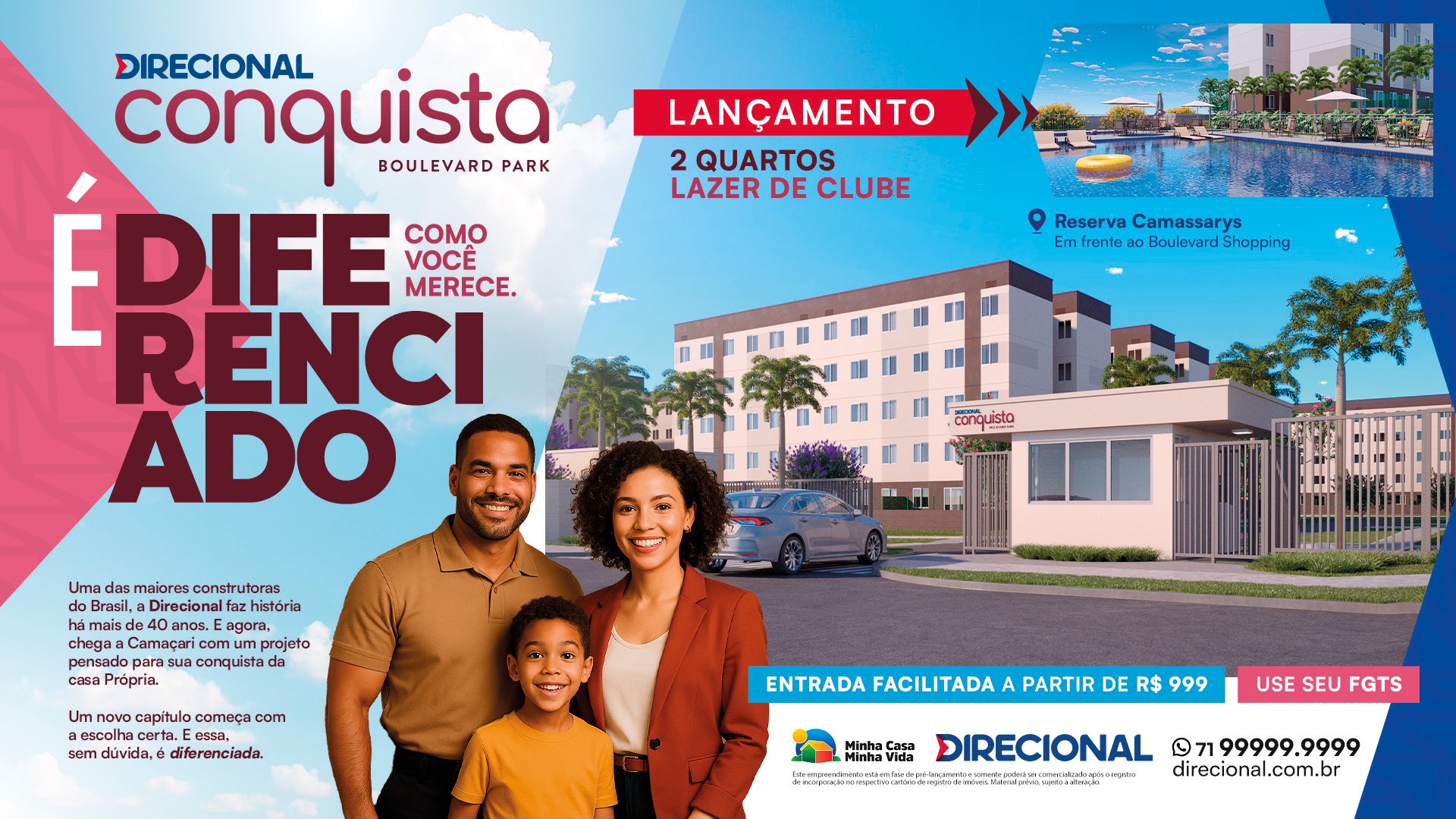 Posicionamos o produto como a evolução do MCMV, com uma campanha que une pertencimento e regionalidade, conectando a força nacional da Direcional à identidade da Bahia.